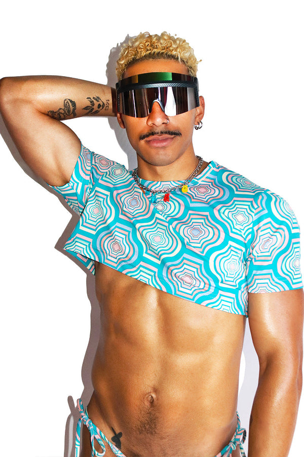 Retro Forest Extreme Crop Tee- Blue