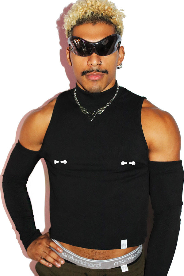 Heartbreaker Cutout Crop Tank-Black