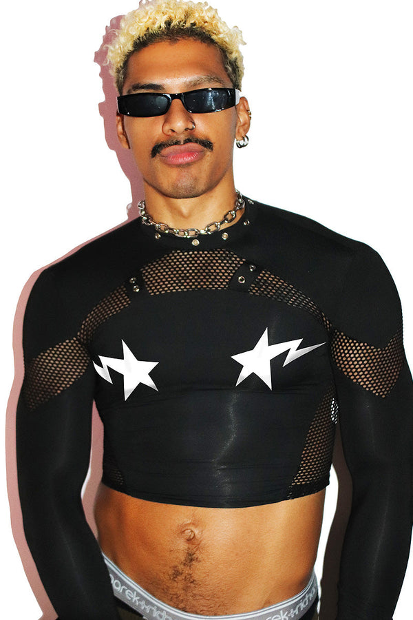 Core Mesh Crop Tank-Black