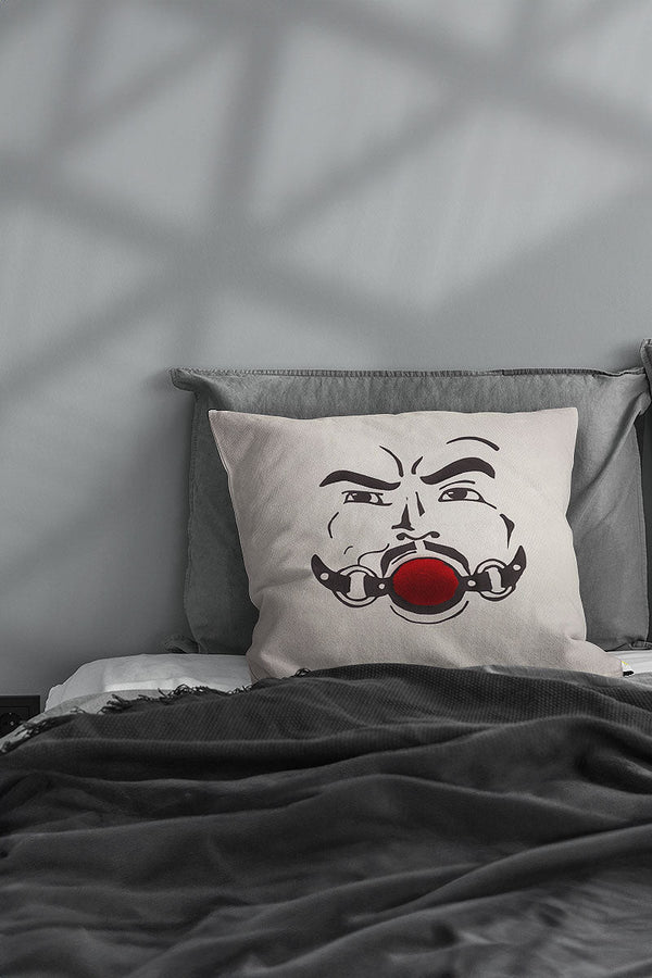 Ball Gag Pom Pom Throw Pillow-Cream