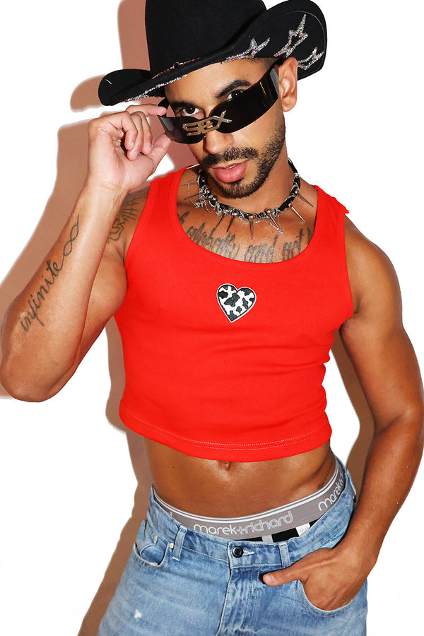 Cow Poke Rib Knit Extreme Crop Racerback Tank- Red