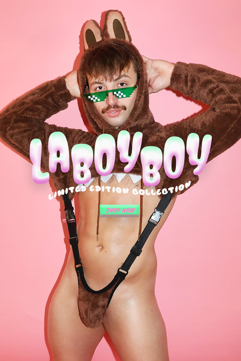 Laboyboy Furry Monster Hoodie Strap Thong Bodysuit- Stormy