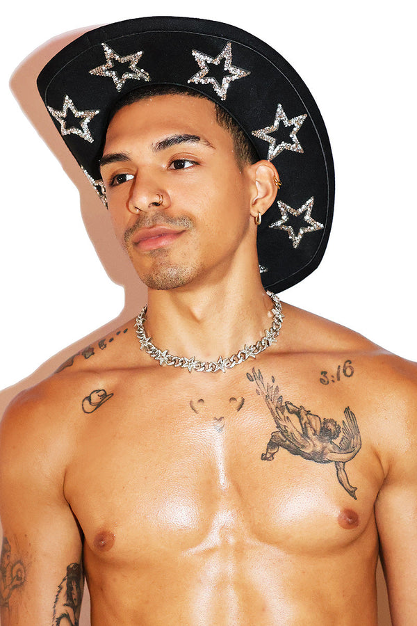 Rhinestone Cowboy Star Hat - Black
