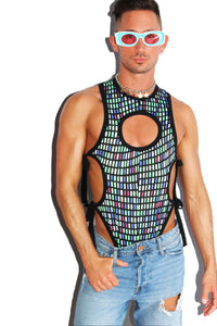 Mind Relaxtion Mosaic Cutout Rib Knit Tied Up Bodysuit- Black