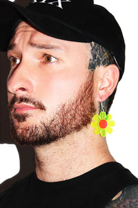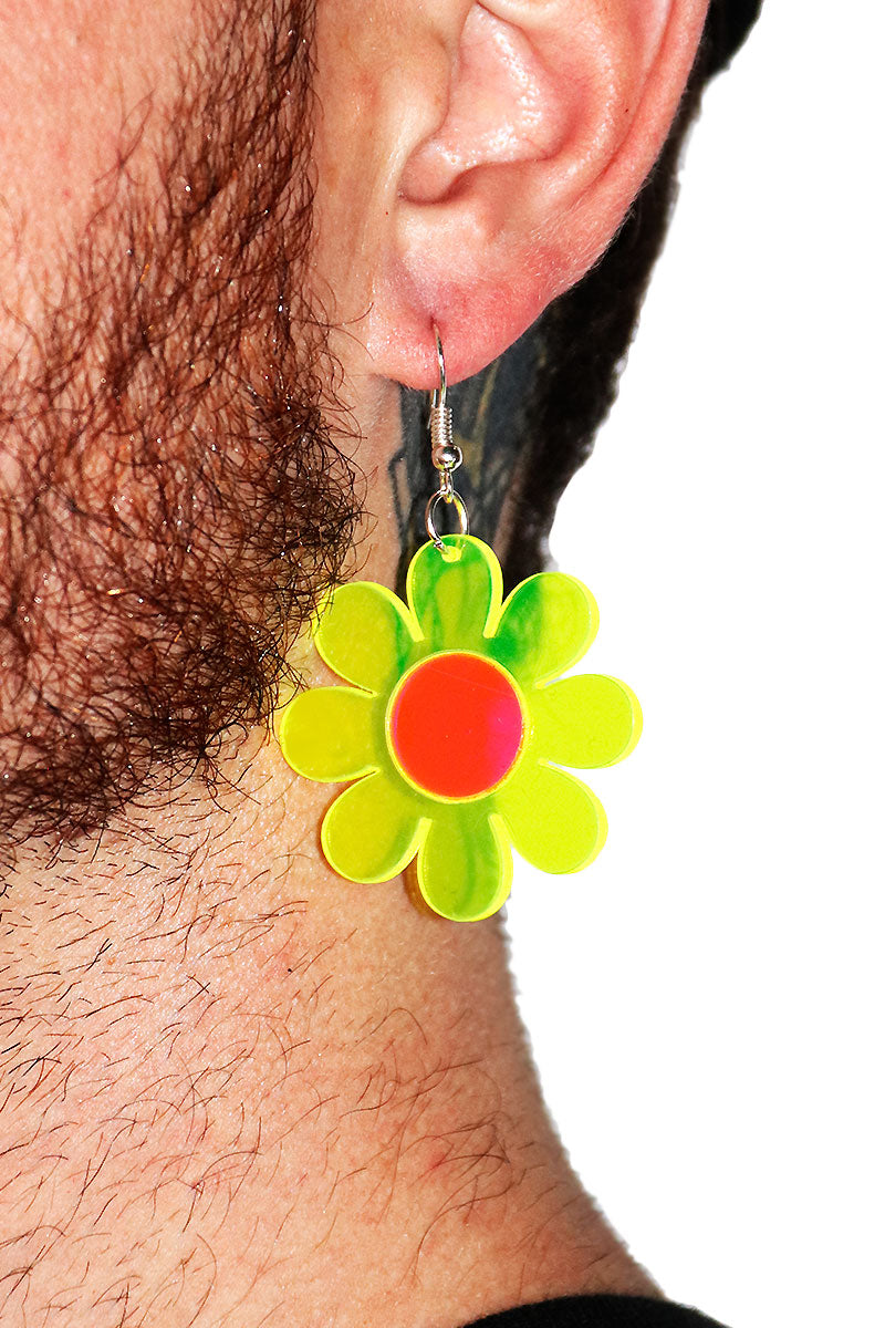 Daisy Flower Acrylic Earring - Neon Green