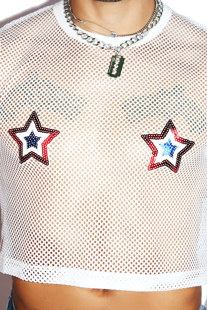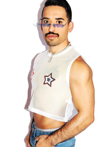 American Pasties Mesh Crop Tank- White