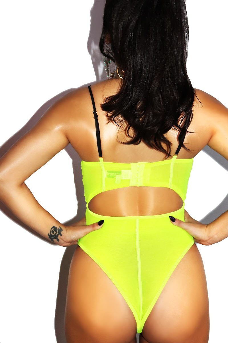- Neon Stretch Mesh Material with Satin Bra Cups