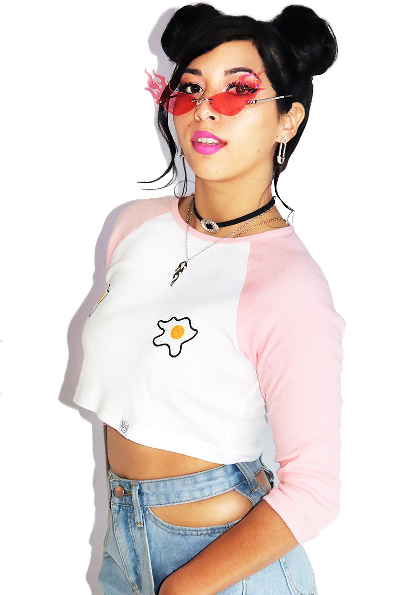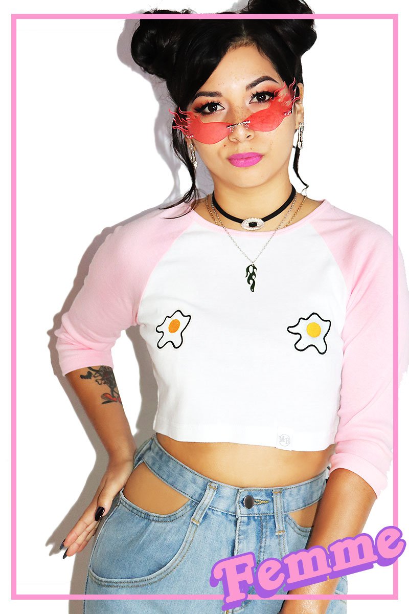 Eggsellent Pasties Raglan Crop Tee-Pink