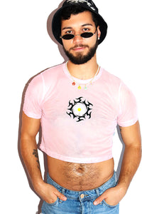 Daisy Ink Mesh Extreme Crop Tee- Pink