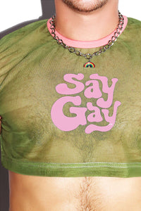 Say Gay Mesh Extreme Crop Tank- Army