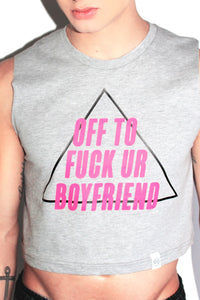 Off To Fuck Your Boyfriend Crop Tank- Grey