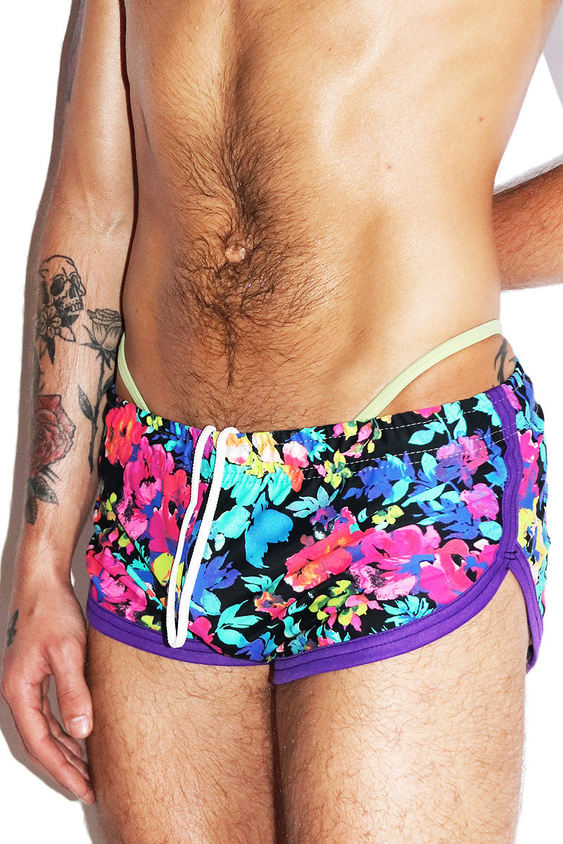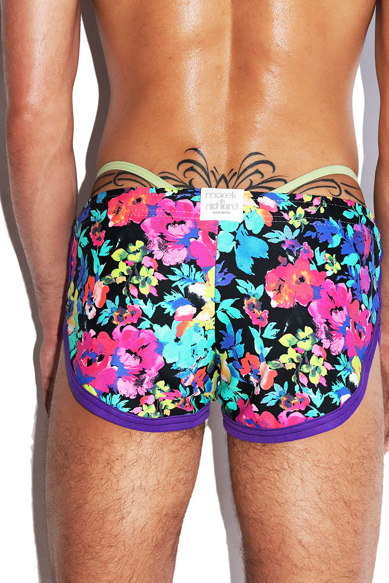 Aquatic Florals Swim Shorty Running Shorts- Black