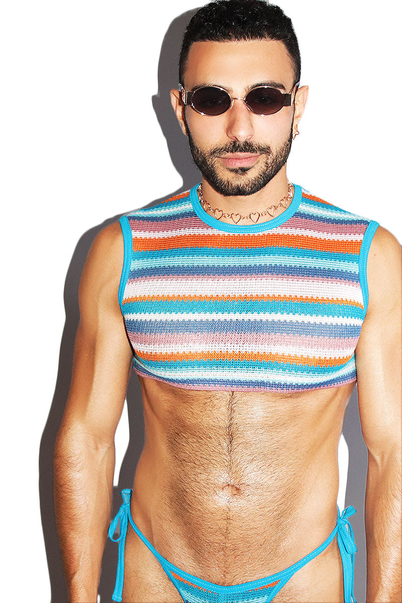 Greek Villa Mesh Knit Extreme Crop Tank- Blue