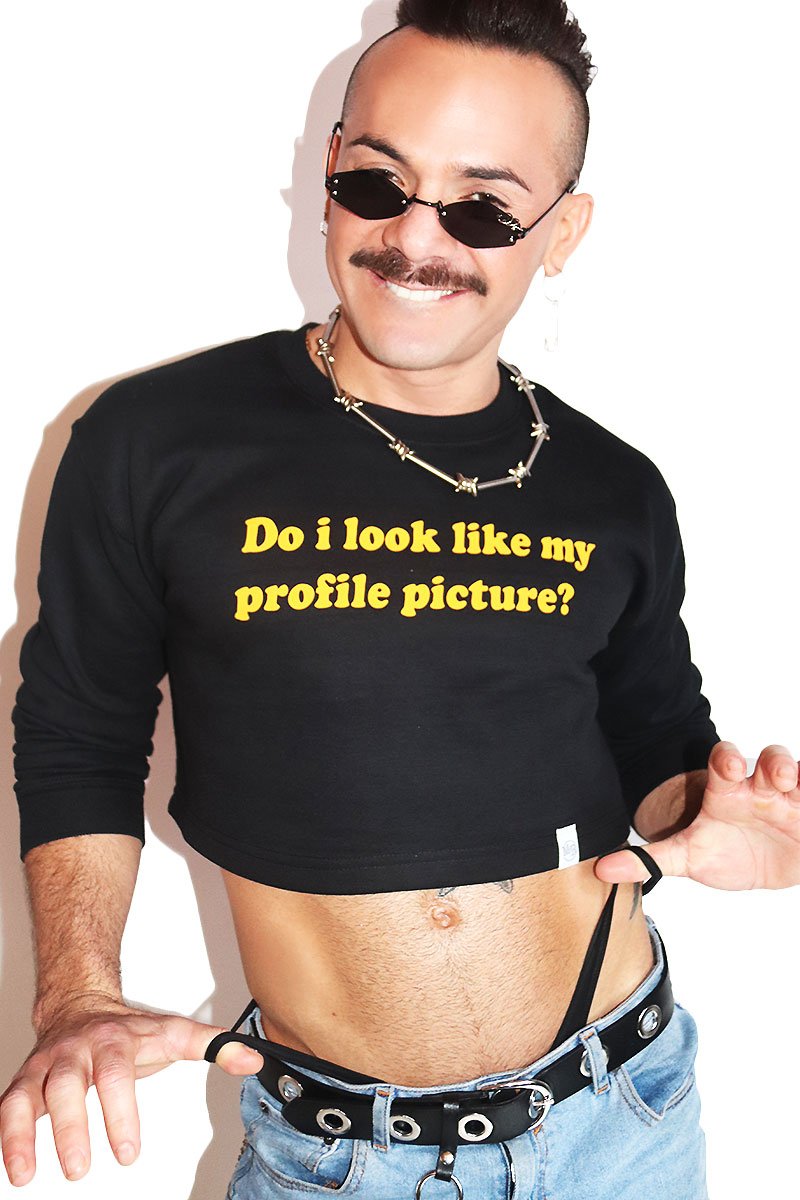 Profile Pic Long Sleeve Crop Sweatshirt- Black