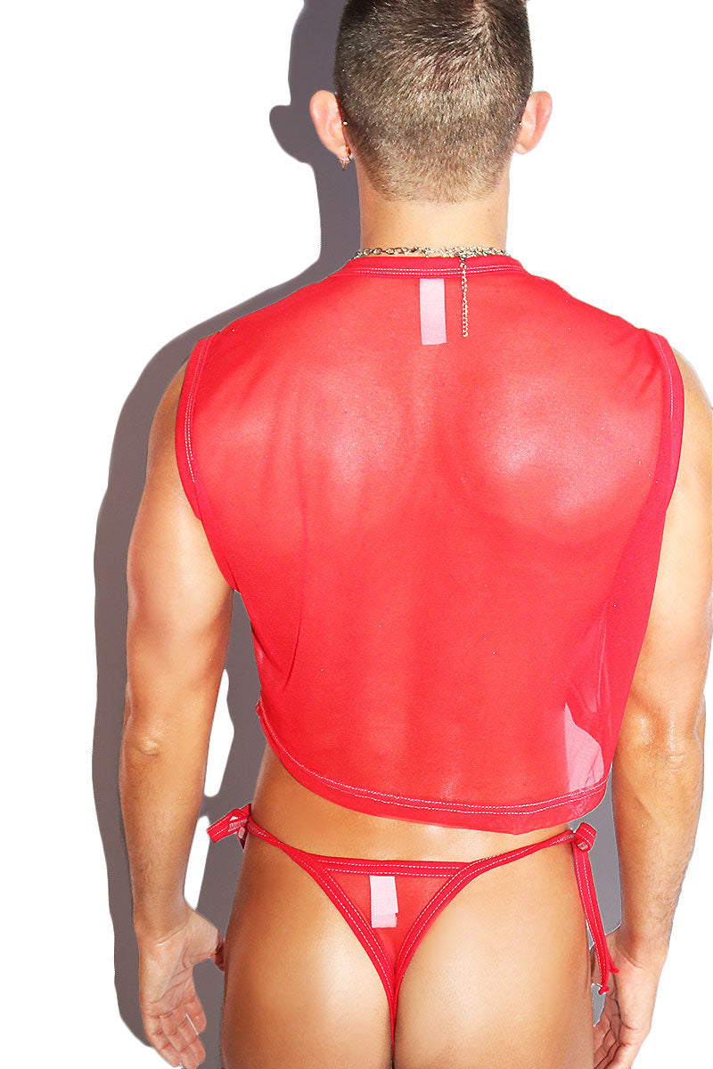 Heart Mesh Cutout Crop Tank- Red