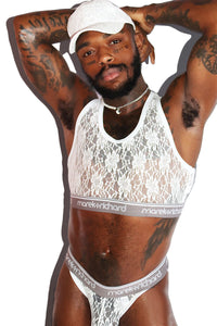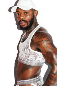 Lace Lingerie Crop Racerback Tank- White