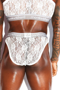 Lace Lingerie High Cut Bikini- White