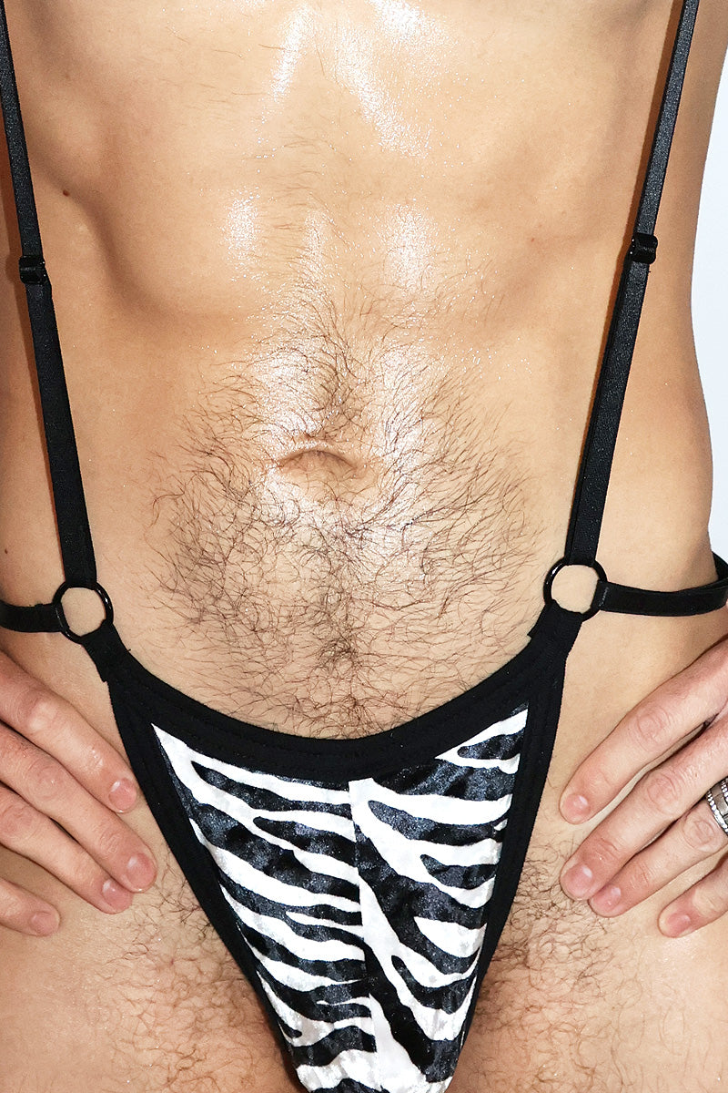 Zebra Brushed Velvet Elastic Body Thong- Black