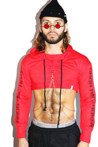Anon and Horny Chains Long Sleeve Crop Hoodie- Red