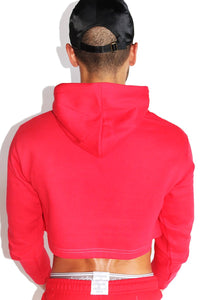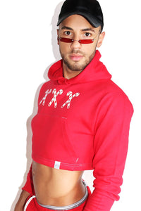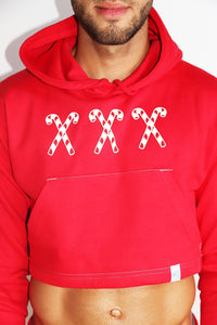 XXX Candy Cane Long Sleeve Crop Hoodie- Red