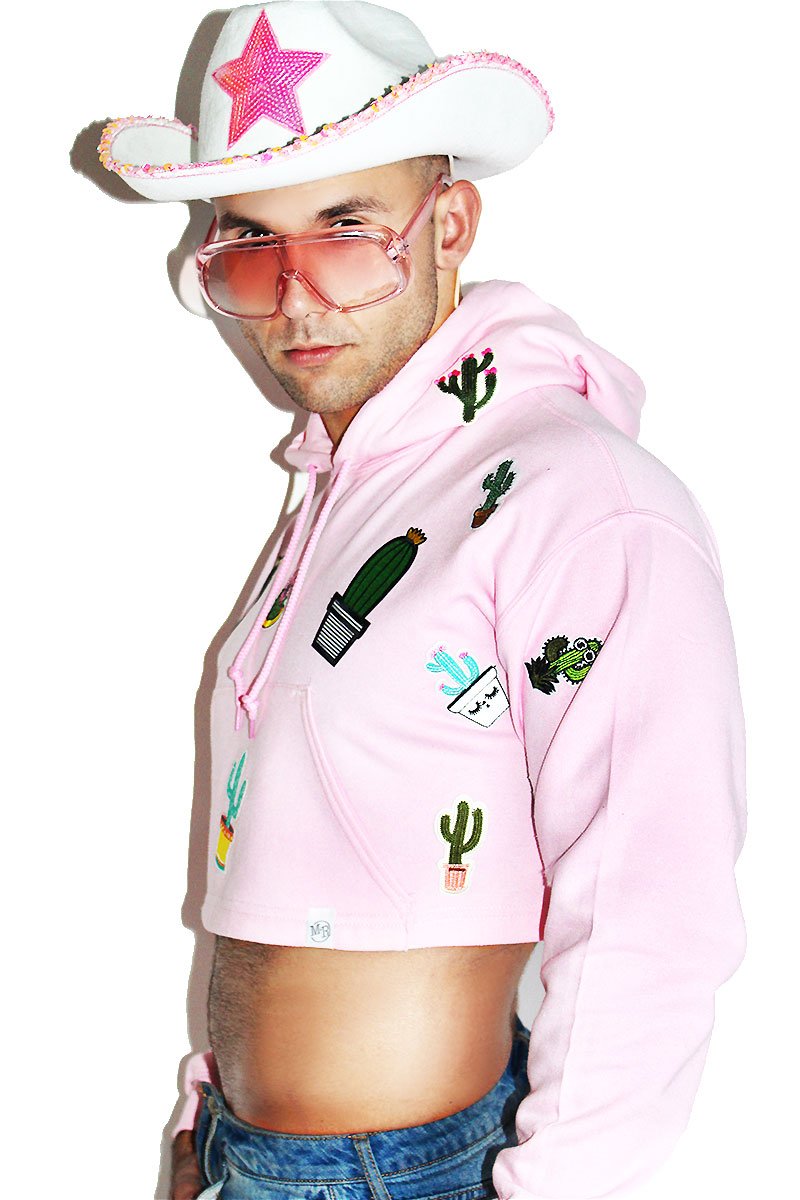 Cactus Patches Crop Long Sleeve Hoodie-Pink
