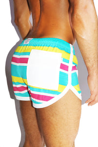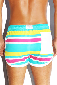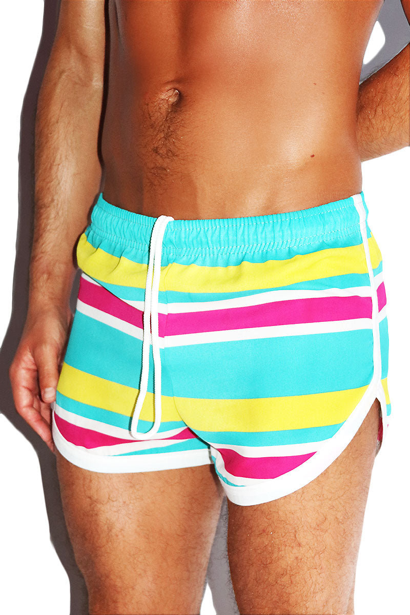 Palm Springs Stripe Running Shorts- Teal