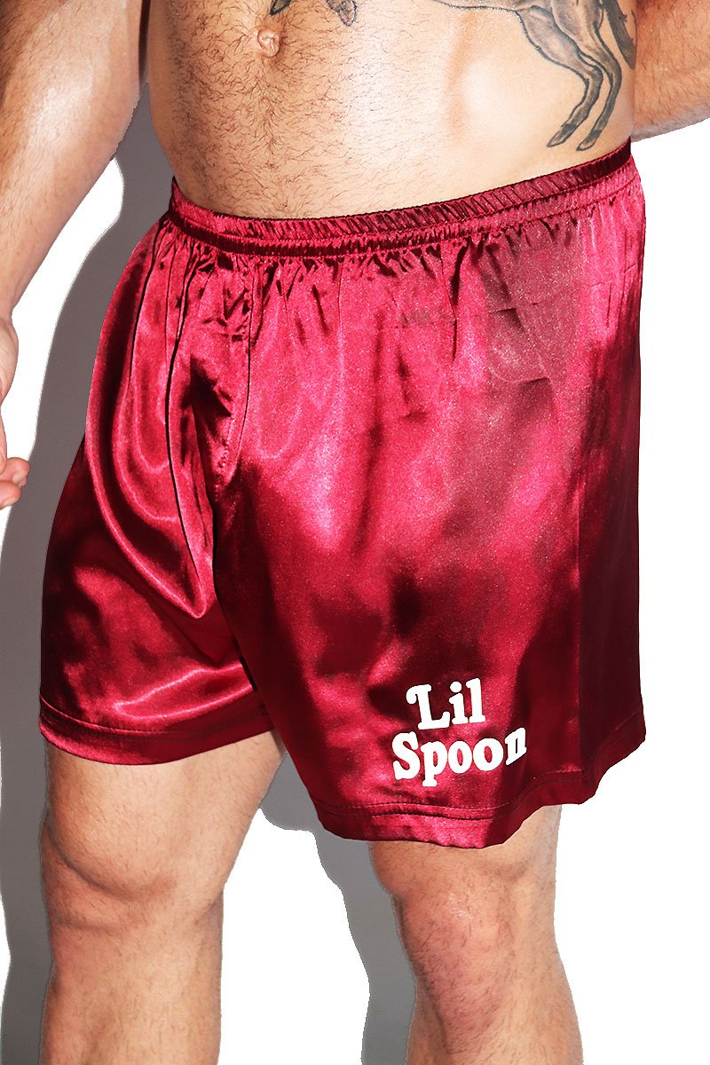 Lil Spoon Satin Lounge Shorts-Burgundy