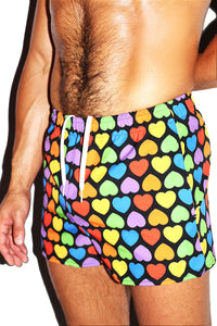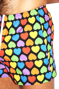 Arcade Rainbow Heart All Over Print Active Shorts- Multi
