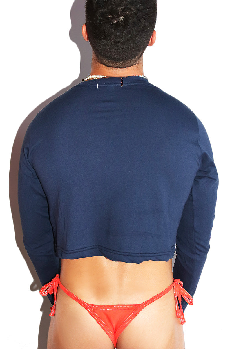 Cuddle Monster Long Sleeve Crop- Navy