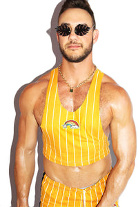 Shooting Star Stripe Crop Racerback Tank- Yellow